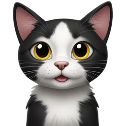 Cat in black and white, smiling with raised front leg emoji | AI Emoji Generator