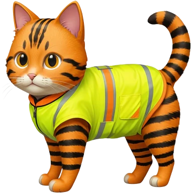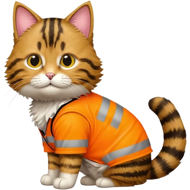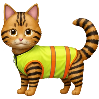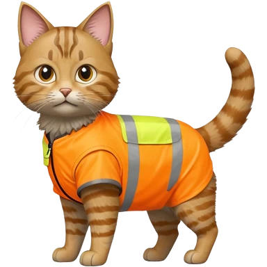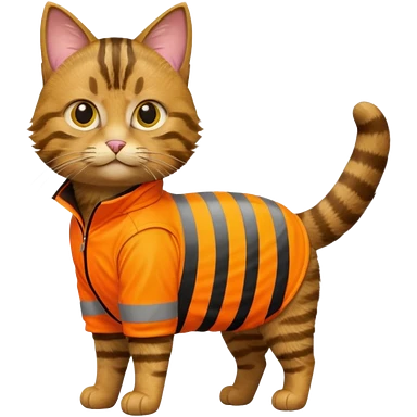 tabby cat standing in orange hi-vis clothing facing right emoji