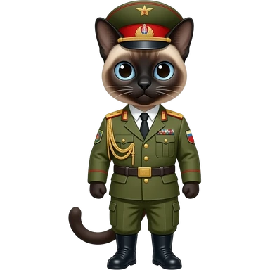 Siamese cat in military russian uniform emoji