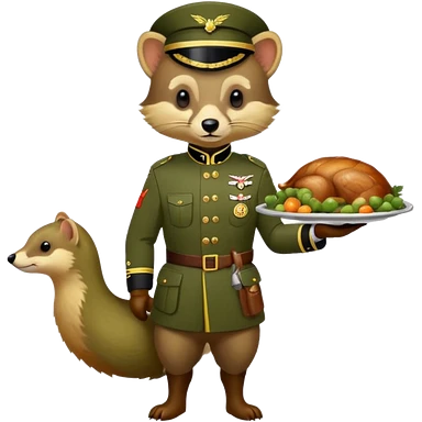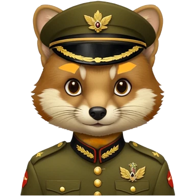 Evil cat wearing black and red military uniform while smoking cigar emoji