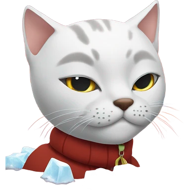 Bald cat eating ice on a red beach in the snowy winter emoji