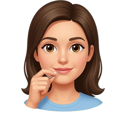 girl with blue eyes and black hair. She is laughing at her pig. Her pig is trying to kiss her emoji