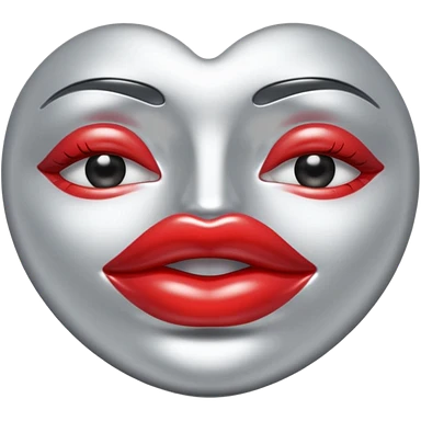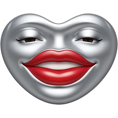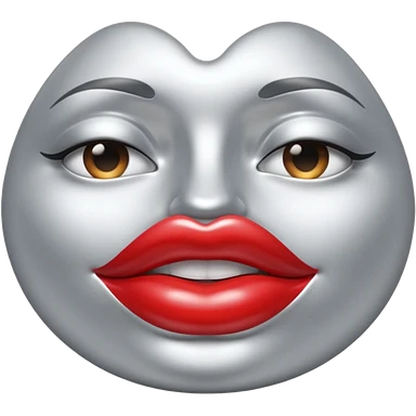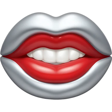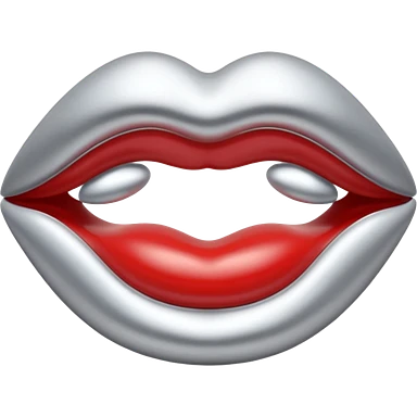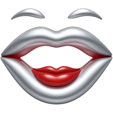 A seductive pair of slightly parted lips emoji made of liquid silver chrome, smooth glossy metallic surface, soft sensual curves, subtle reflections, luxury sexy aesthetic, minimal iOS emoji style, centered composition, clean white background, soft studio lighting, no text emoji