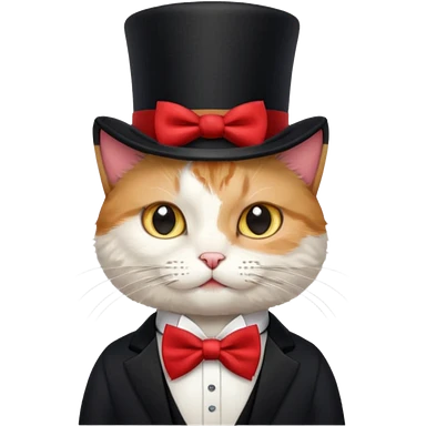 Cat and wearing a top hat and a bow tie emoji