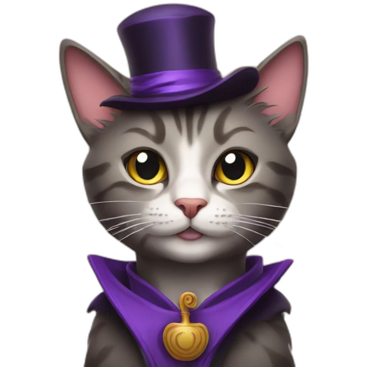 A magician cat in a top hat, a bowtie and a purple cape with stars emoji