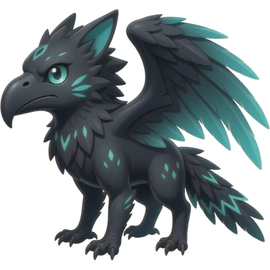 Black Dark Exotic Beaked Feathery Nocturnal Neon-glowing Abyssal Nightly Abyss-Cat-Gryphon-Salandit-Nargacuga-Silvally-Fakémon Creature (full body) emoji