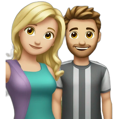 Boy with a black hat and a girl with Brown hair and tongue out are happy and taking a Photo in a photobox emoji