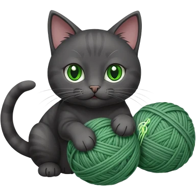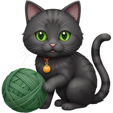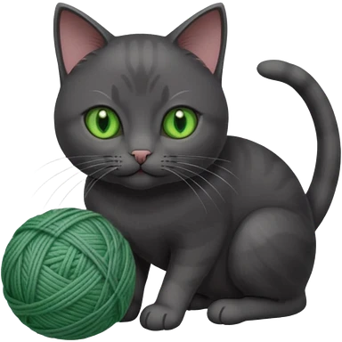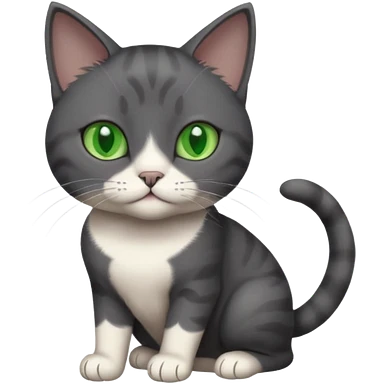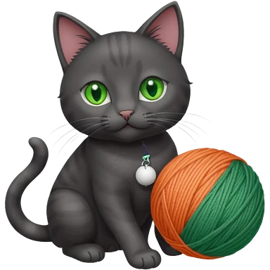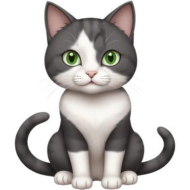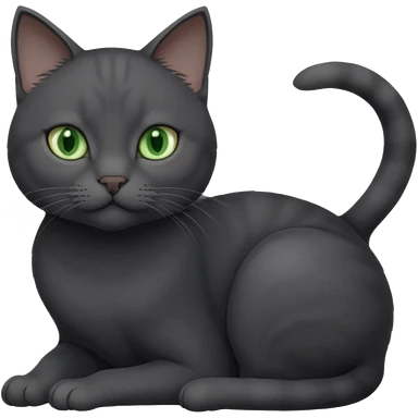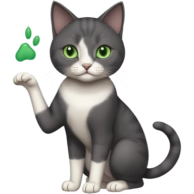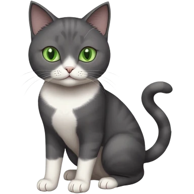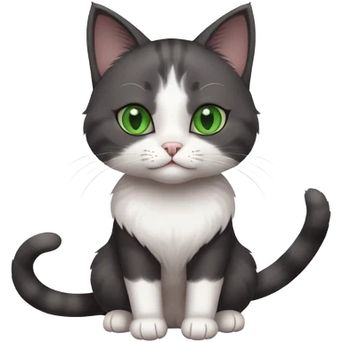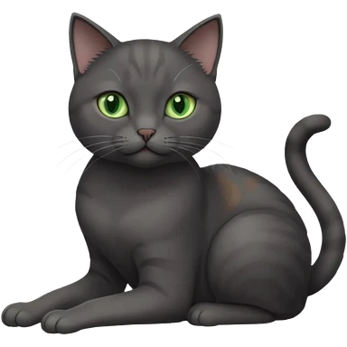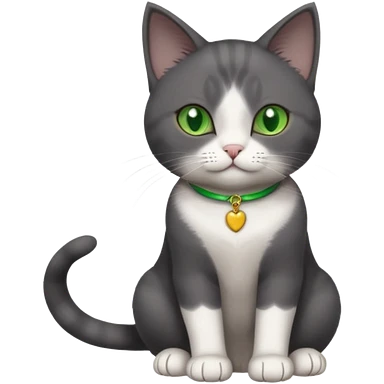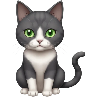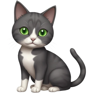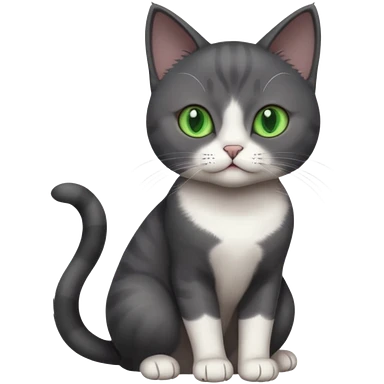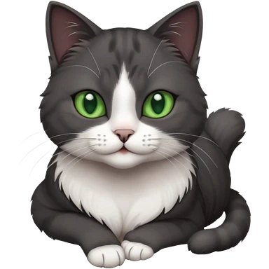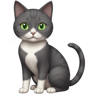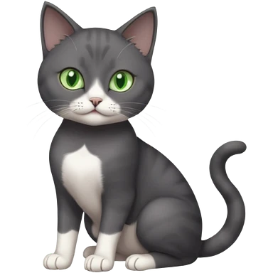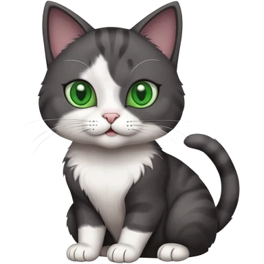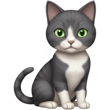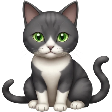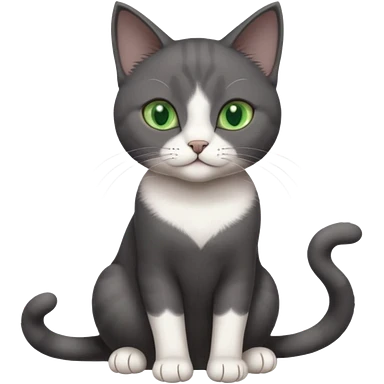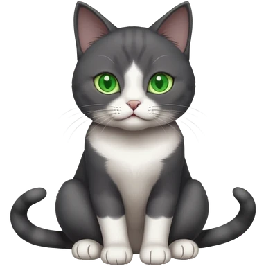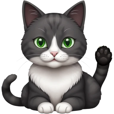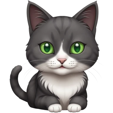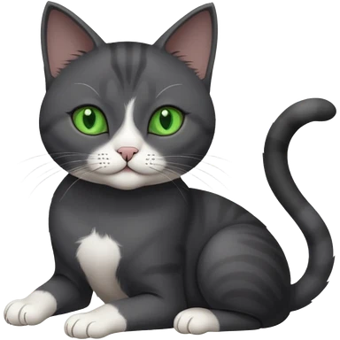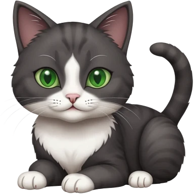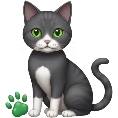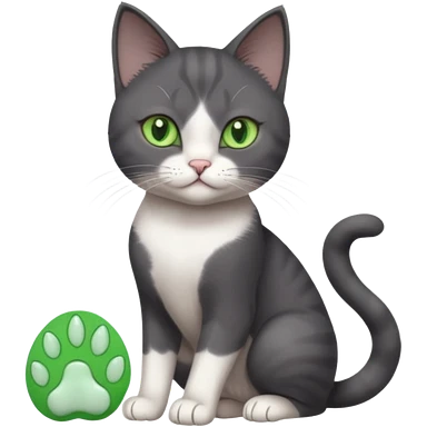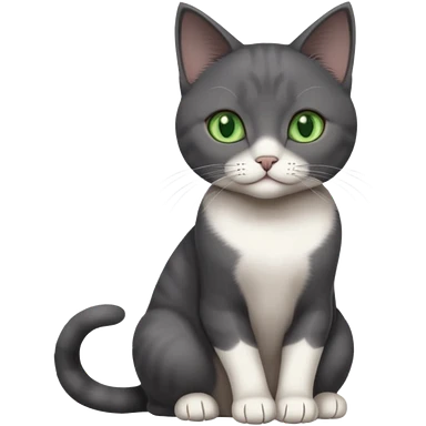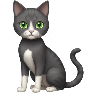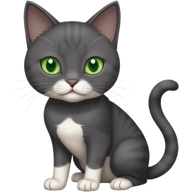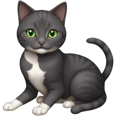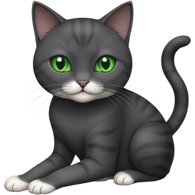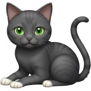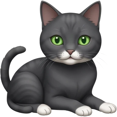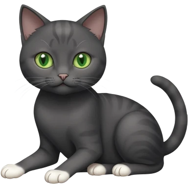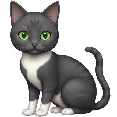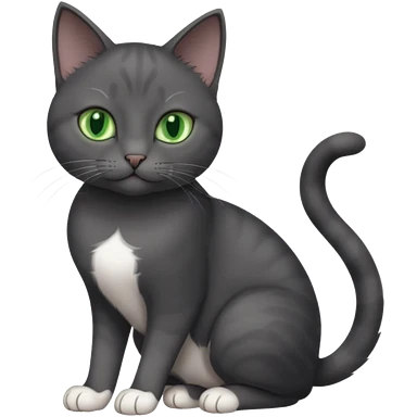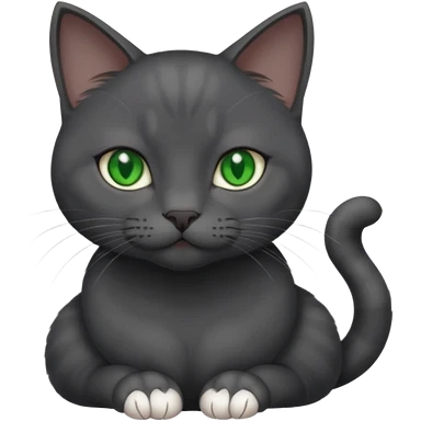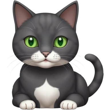 beautiful female solid dark grey cat with green eyes, white toes/paws and white patch on her chest playing emoji