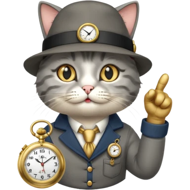 cat pointing at a pocket watch wearing a hat emoji | AI Emoji Generator