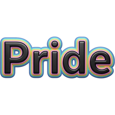 Word "Pride" in a glossy black color, 3D style typography lettering, with each neon pastel color as a layered effect outlined around each letter, isolated, 3d rendering, no emoji icons no emoji faces and must have no human figures emoji