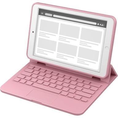 Tablet rosa claro aberto onde a tela está ligada em algum site BRANCO emoji