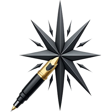 A black, excited male cat with a sleek, cool vibe, holding a large fountain pen with a big smile and bright eyes emoji