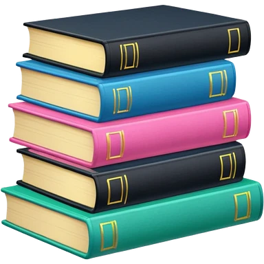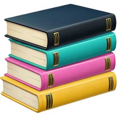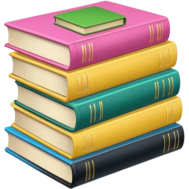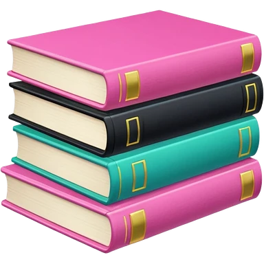 a satck of books: two pink, one green, one yellow, two blues, one black emoji