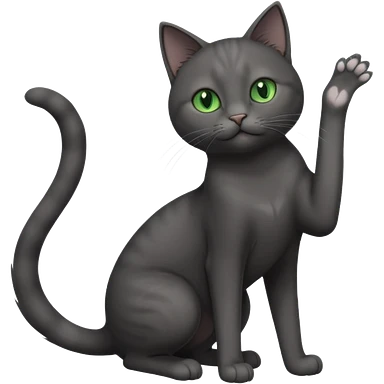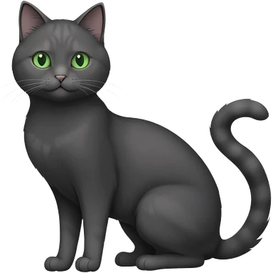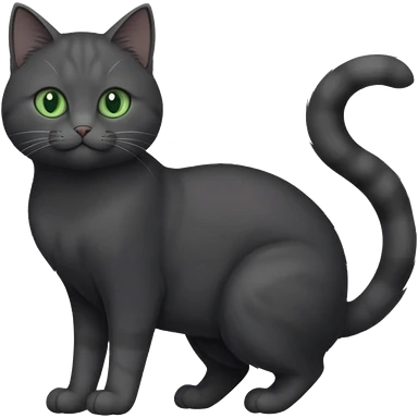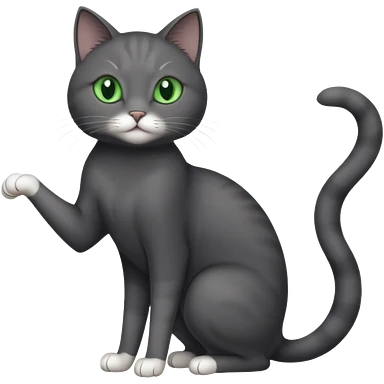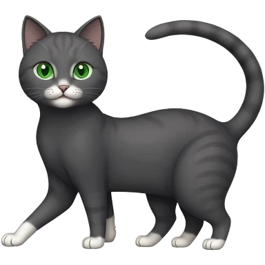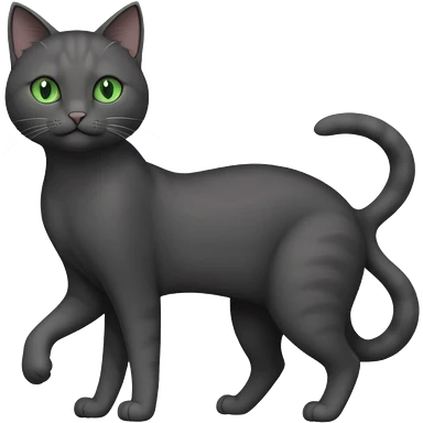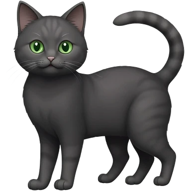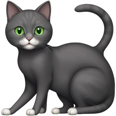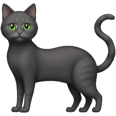 full body gorgeous solid dark grey cat with green eyes, white paws and white whiskers stretching emoji
