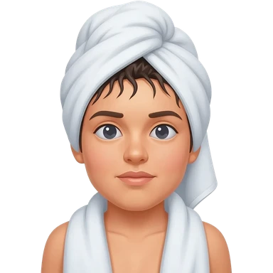Fair skin - beautiful girl - just finished taking a shower - wrapped in a white blanket holding a golden gradient cat emoji