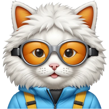 Gray British shorthair cat skiing down a mountain eating dumplings emoji