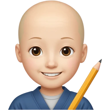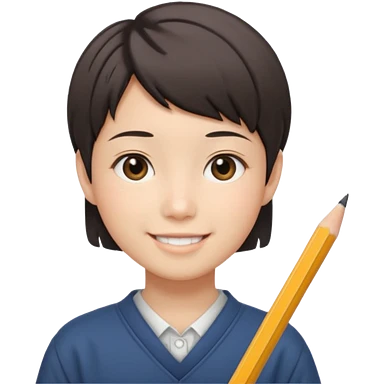 quero um personagem japones, de pouco cabelo e sorrindo com um lapis na mao emoji