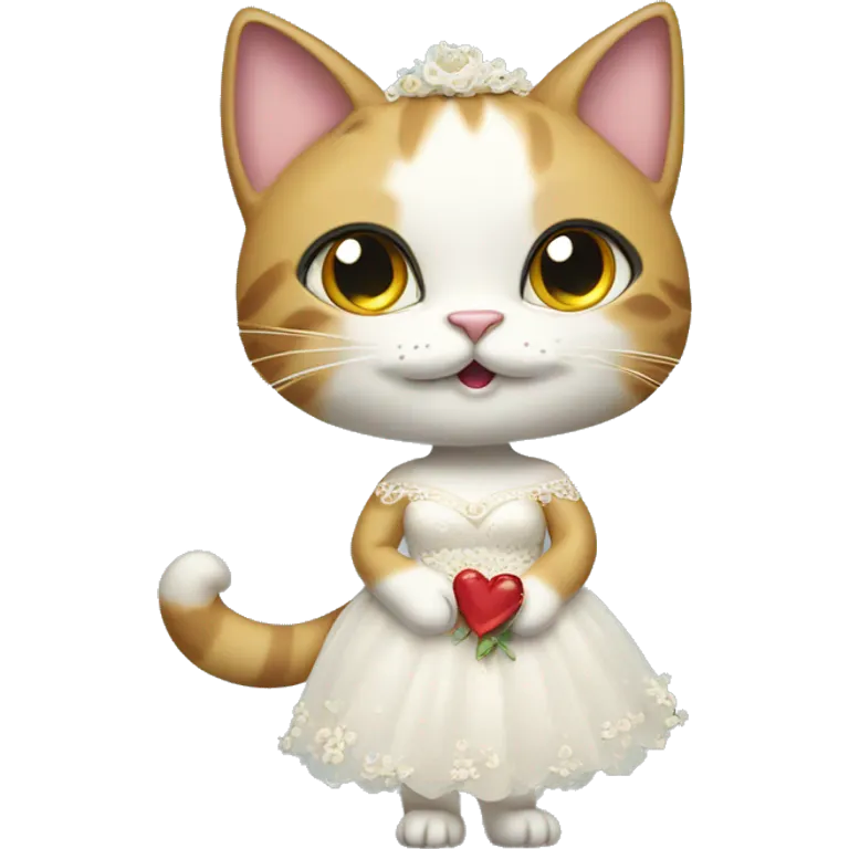 cat standing on two legs in bridal dress with heart in eyes emoji | AI Emoji Generator