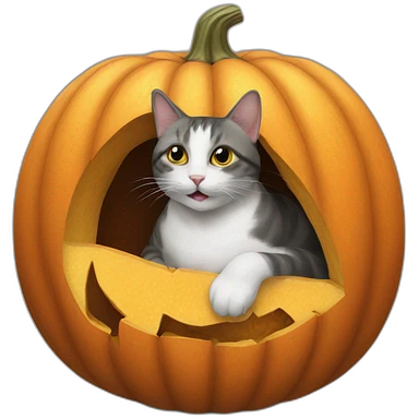 Adorable fat cat stuck in a small box with surprised expression emoji