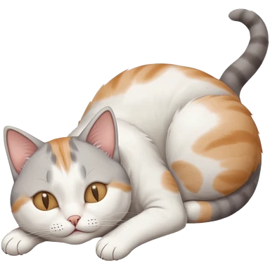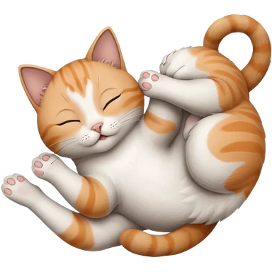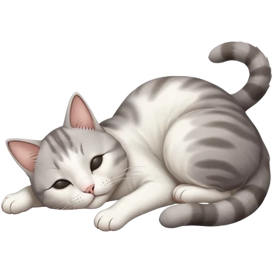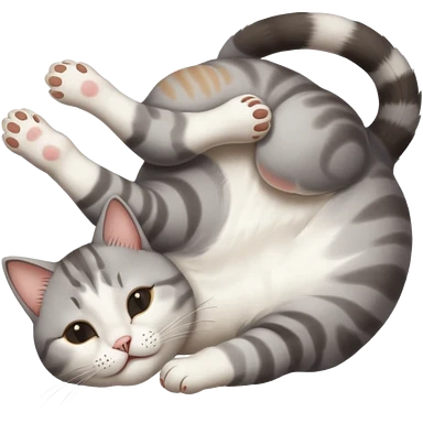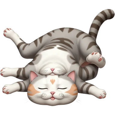 grey and white small cat with eyes closed lying down upside down with paws stretched out straight vertically emoji