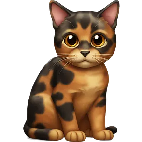 small tortoiseshell cat. only black and and orange. amber eyes. full body. emoji