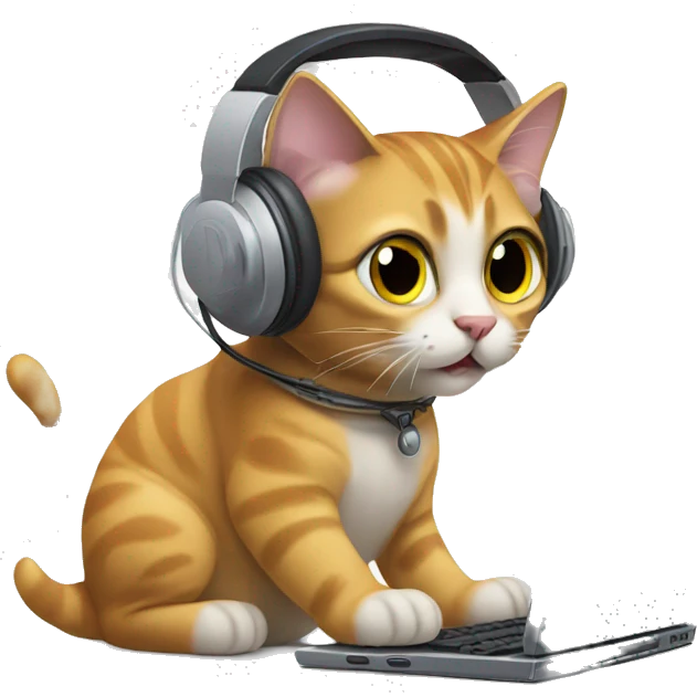 Cat typing on a computer wearing a headset emoji | AI Emoji Generator