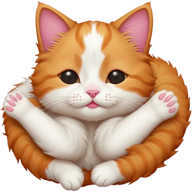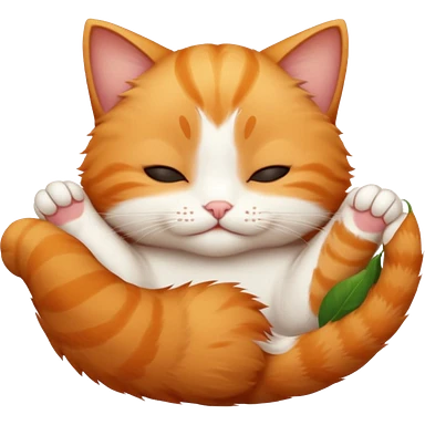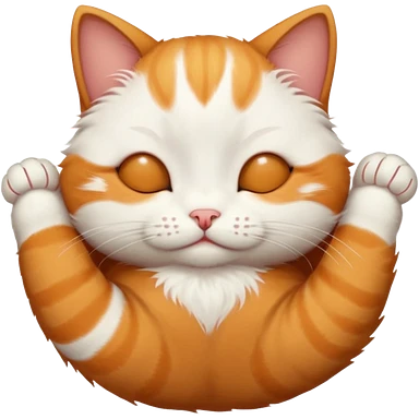grey and white small cat with eyes closed lying down upside down with its head resting own paw emoji