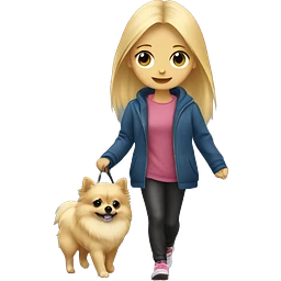 light skin women with brown hair, worn down, parted to the side, wearing black shorts, white tank, black flip flops, walking a white pomeranian on a leash emoji