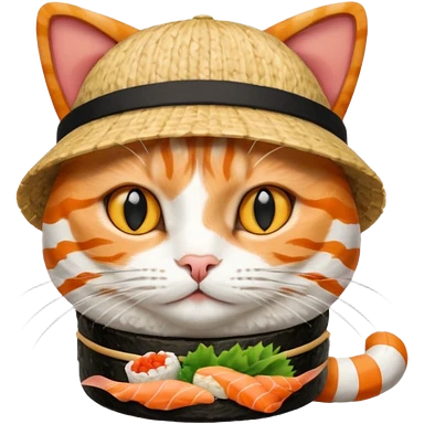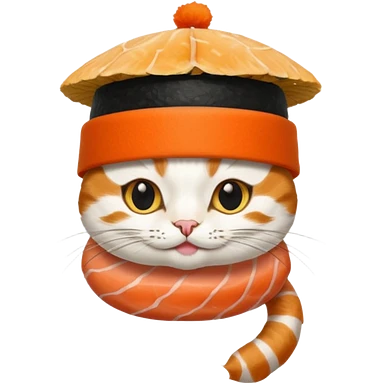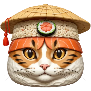 cat wearing a hat made out of sushi, highly detailed sushi hat emoji