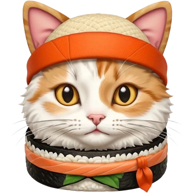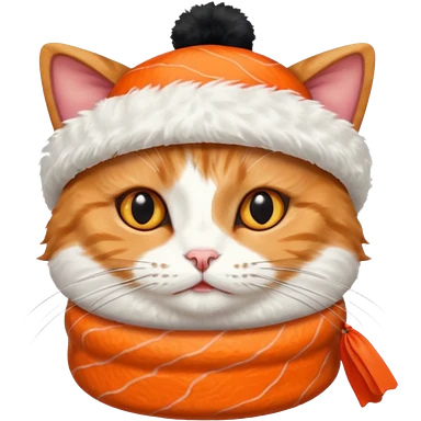 Cat wearing a hat made out of sushi emoji | AI Emoji Generator