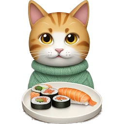 A cat wearing a sweater eating sushi emoji