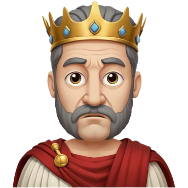 Sad Emperor: A Roman emperor wearing a laurel crown and toga, looking down with a tear rolling down his cheek, expressing sadness—perhaps over a political loss or defeat. emoji