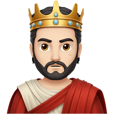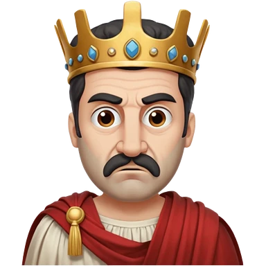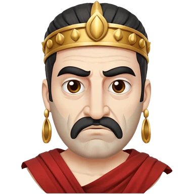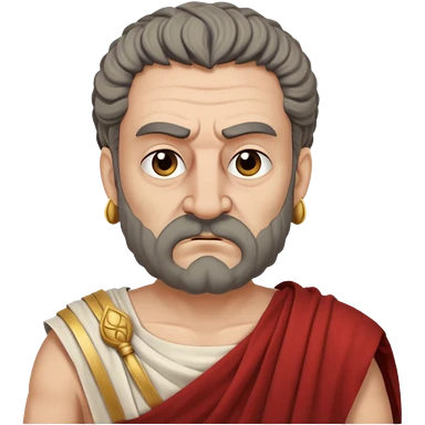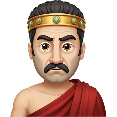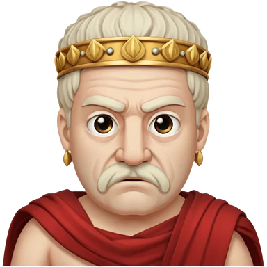 Create an emoji of a Roman emperor, wearing a laurel wreath and a red toga with gold trim. He has a stern expression, short hair, and a dignified, authoritative look emoji