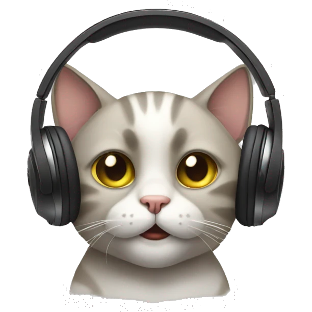 Cat wearing headphones, listening to music with colorful sound waves coming out of the ears. emoji