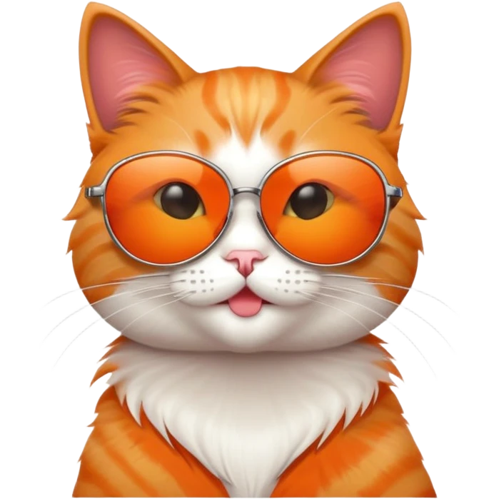 A cool, cartoon-style cat wearing oversized black sunglasses, sitting confidently with a relaxed expression. The cat has smooth fur, a small smirk, and a playful yet stylish posture. Flat, modern illustration, minimal shading, digital art, white background, iOS emoji aesthetic. emoji