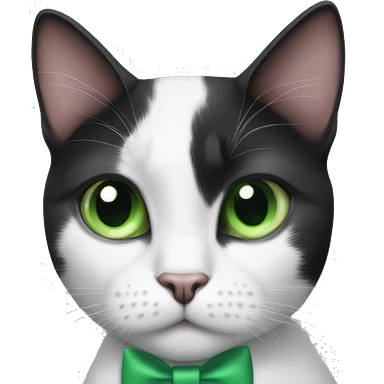 tuxedo cat with green eyes wearing a green bow tie emoji