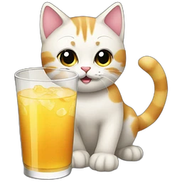 Create a white cat with black ears and a black tail drinking a margarita emoji