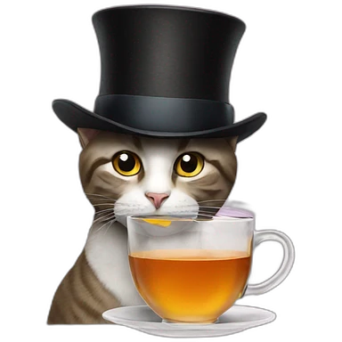 Cat with a top hat drinking tea emoji
