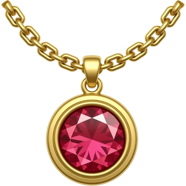 Emoji of a thick gold chain with a big round golden medallion pendant containing a shiny red diamond in the center, luxury style, white background, clean emoji icon emoji