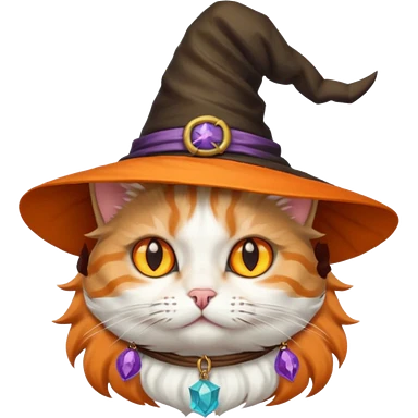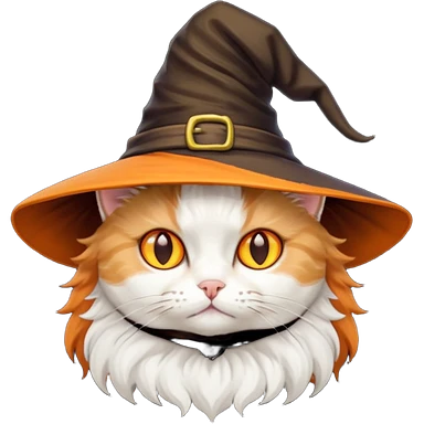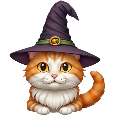 Cat with a witch hat while having a long smoke stick like a chic witch cat emoji