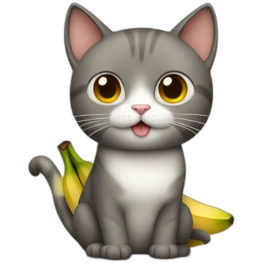 Crazy cat with horse hooves eating a banana with grandmother face emoji