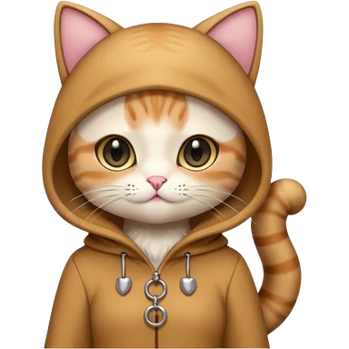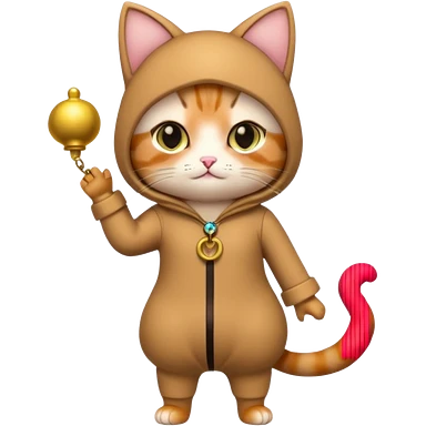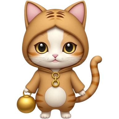 kawaii neko, cute outfit with bell brown cat. suit emoji