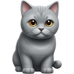 A fat British cat with a turtle color. There is a happy one at the bowl with food emoji