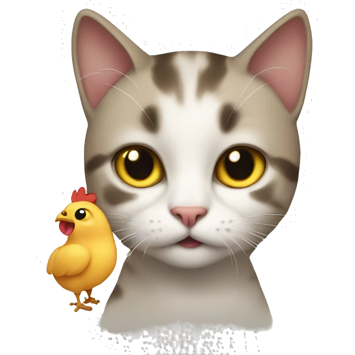a chicken fighting with a cow while a cat watches and drinks milk emoji