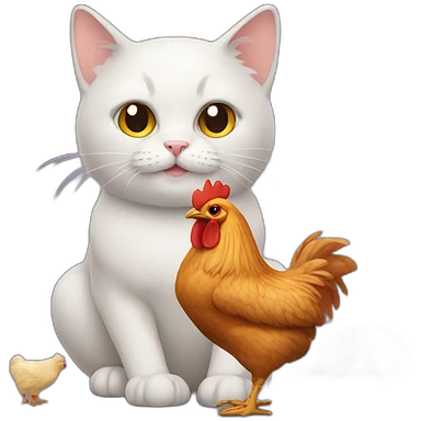 a chicken fighting with a cow while a cat watches and drinks milk emoji