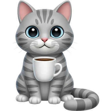 grey cat with coffee emoji