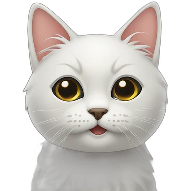 A cute cartoon cat with big, expressive eyes, wearing a tiny business suit and tie, sitting at a miniature desk with a computer, looking focused and adorable emoji