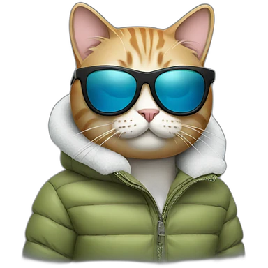 Cat with sunglasses wearing puffer jacket emoji