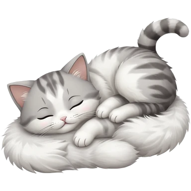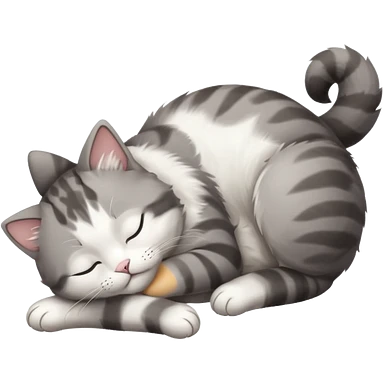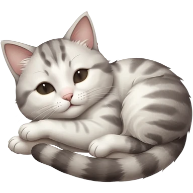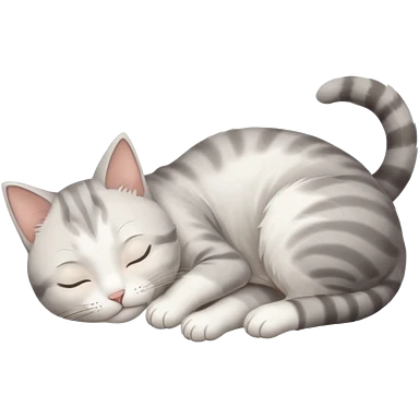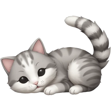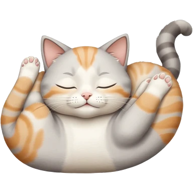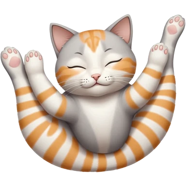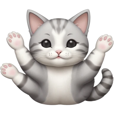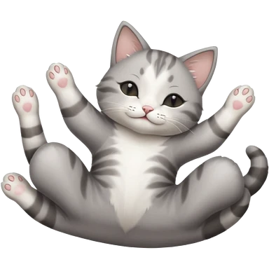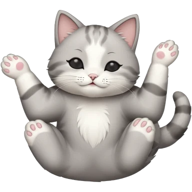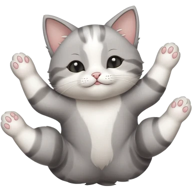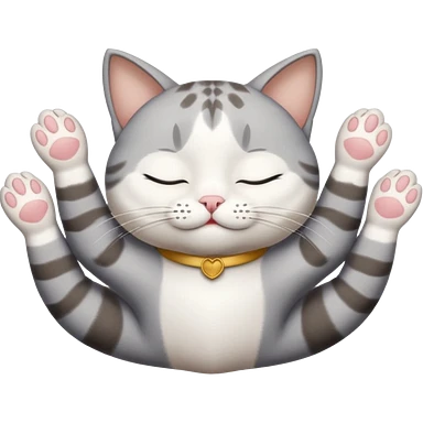 grey and white small cat with eyes closed lying down upside down with paws stretched out straight in different directions emoji