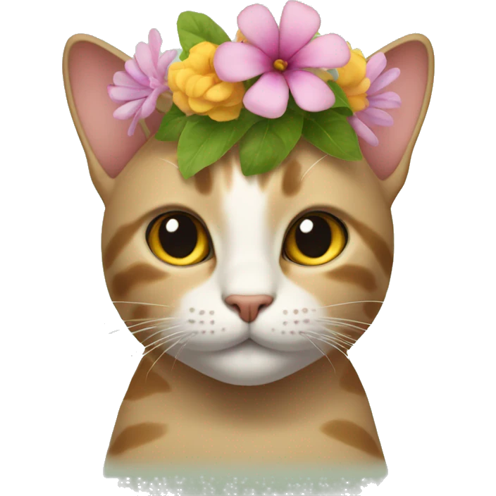 a cat with flower in her head, she's enocent, she should be lil realistic emoji